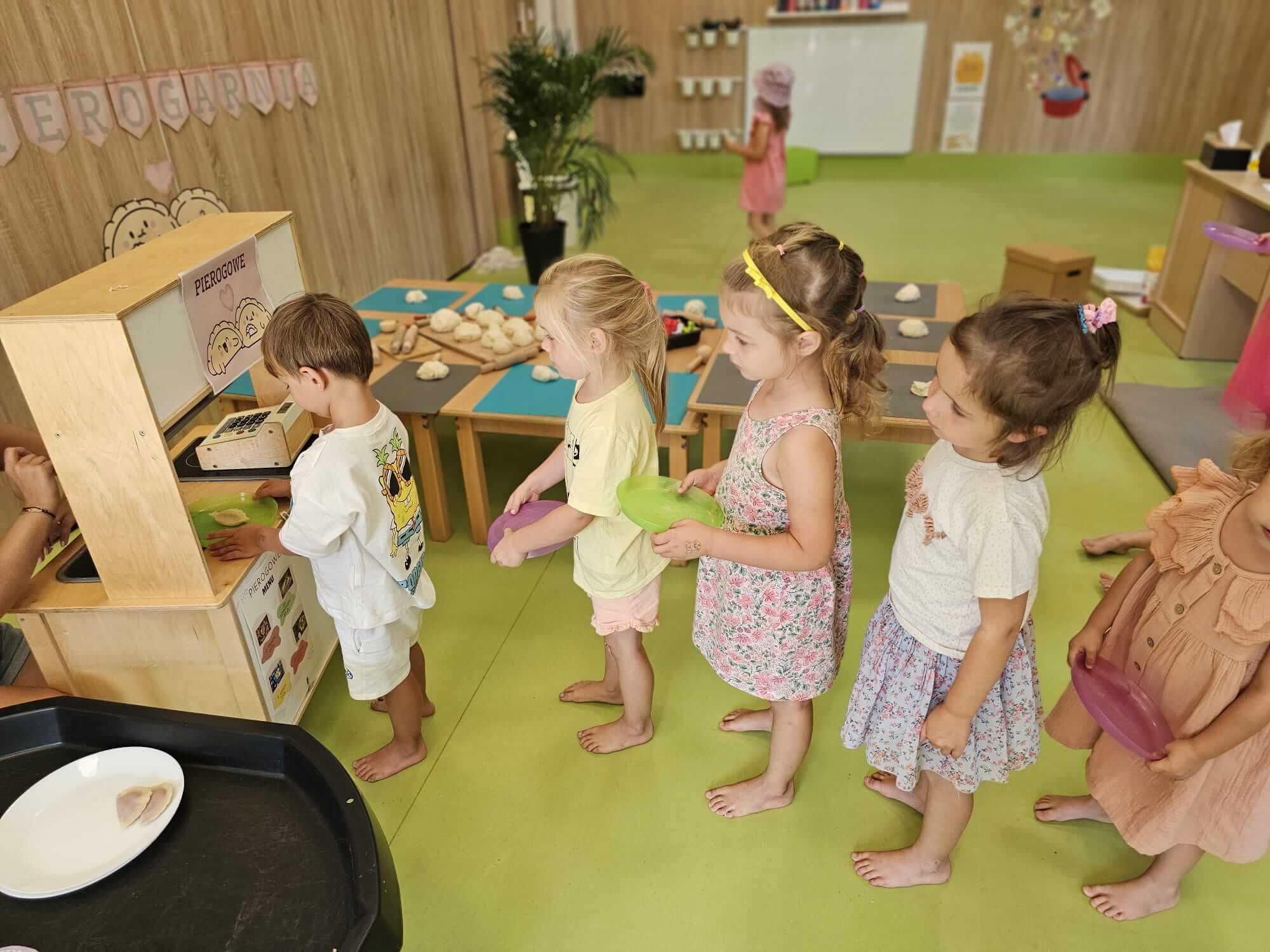 Nasze Kluseczki przez cały tydzień poznawały różne rodzaje mąki, klusek i makaronów, a przy okazji uczyły się zasad, które będą towarzyszyć nam przez cały rok 🍞🍜. Wspólnie tworzyliśmy kopytka na warsztatach kulinarnych 👩🍳, co pozwoliło nam nie tylko na rozwijanie zdolności manualnych, ale też poznawanie nowych smaków! A kiedy degustowaliśmy pyszne pierogi 🥟, odkryliśmy, że choć każdy z nas jest wyjątkowy, to wszyscy jesteśmy „ulepieni z tej samej mąki” – to nasza pierwsza lekcja wspólnoty 🤝.