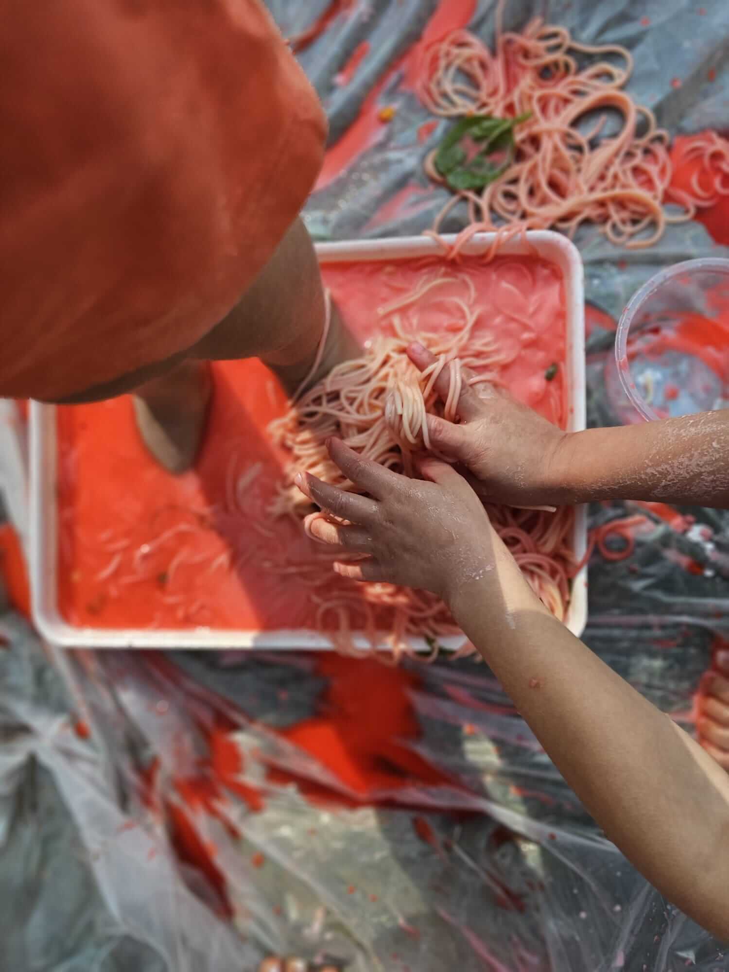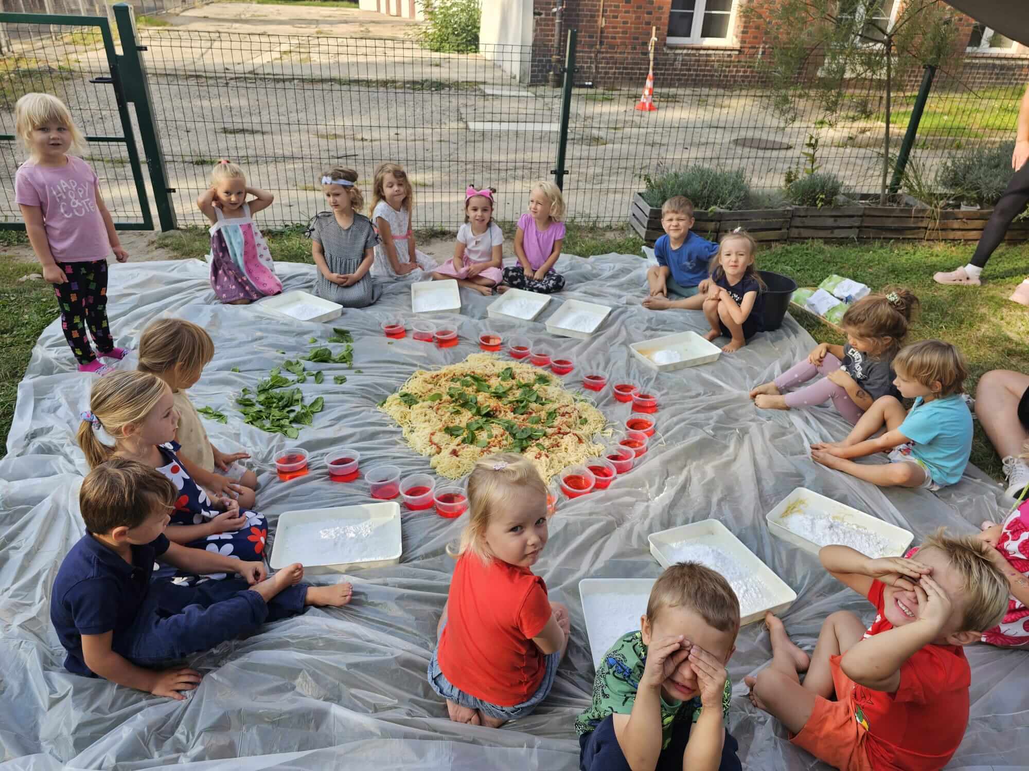 Nasza nowa grupa – Kluseczki – rozpoczęła przygodę w pełnym stylu. Już od pierwszych dni nasza ciocia Kasia, znana z nieskończonej kreatywności 🎨, zabrała dzieci na sensoplastyczną podróż. Kluseczki bawiły się nie tylko „kluseczkami” 🍝, ale i innymi składnikami, które przypominały wszystkim ulubione spaghetti bolognese! Było mnóstwo śmiechu, nowych doświadczeń sensorycznych i oczywiście – pierwsze kroki w budowaniu przyjaźni w grupie 🤗.