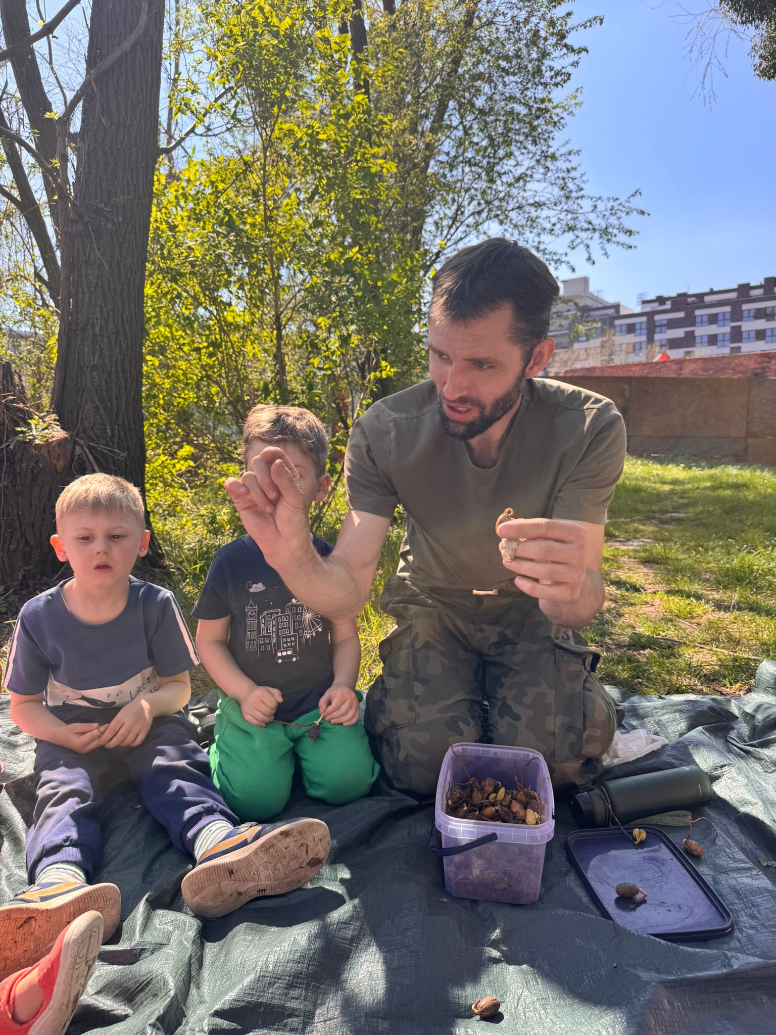 Dzieci spotkały się z panem leśnikiem, który w niezwykle ciekawy sposób opowiedział im o życiu roślin, ich naturalnym rozmnażaniu oraz o tym, jak ważną rolę odgrywają owady i inne stworzenia żyjące w glebie. To była prawdziwa lekcja przyrody – w praktyce i z pasją!