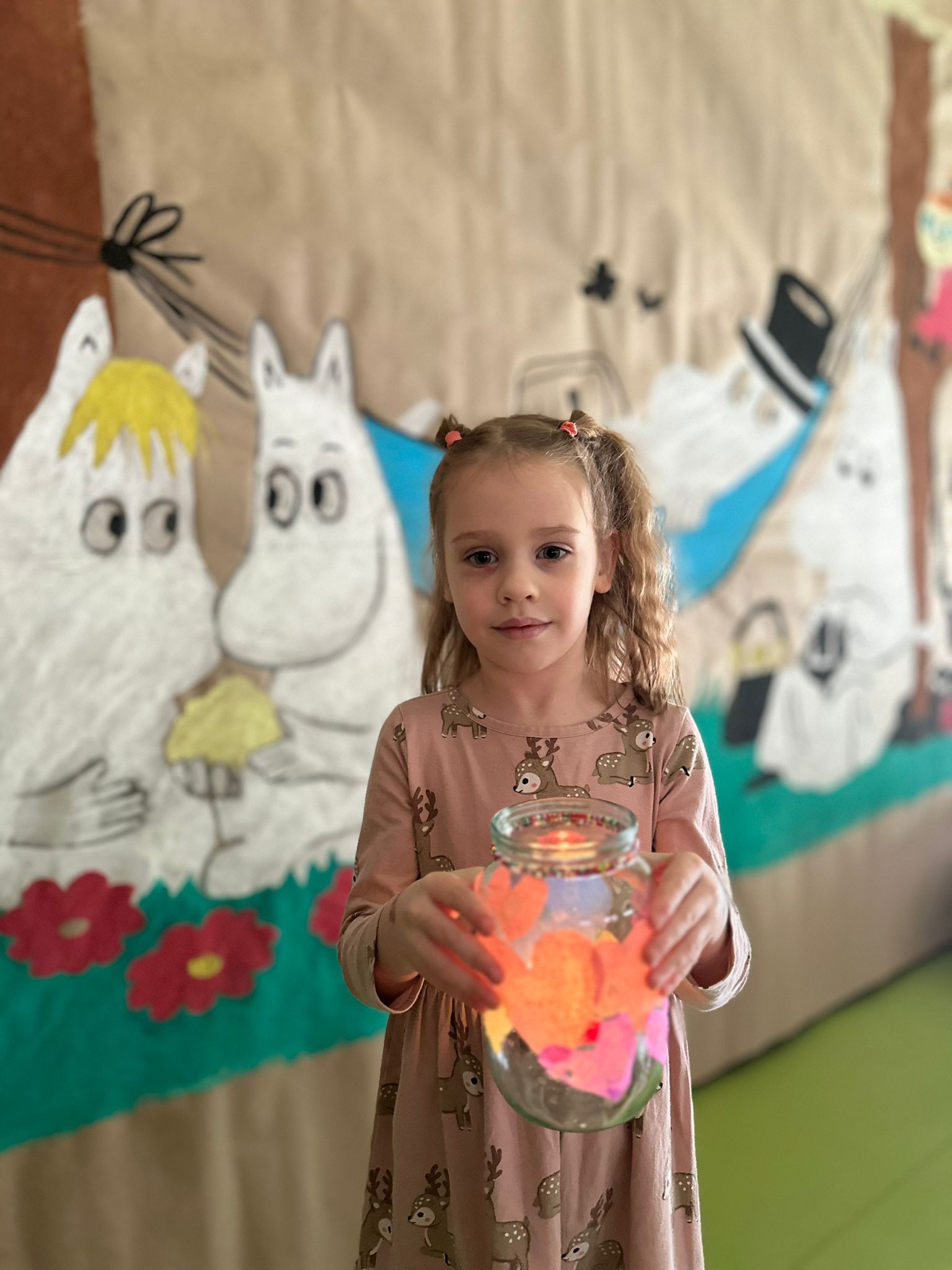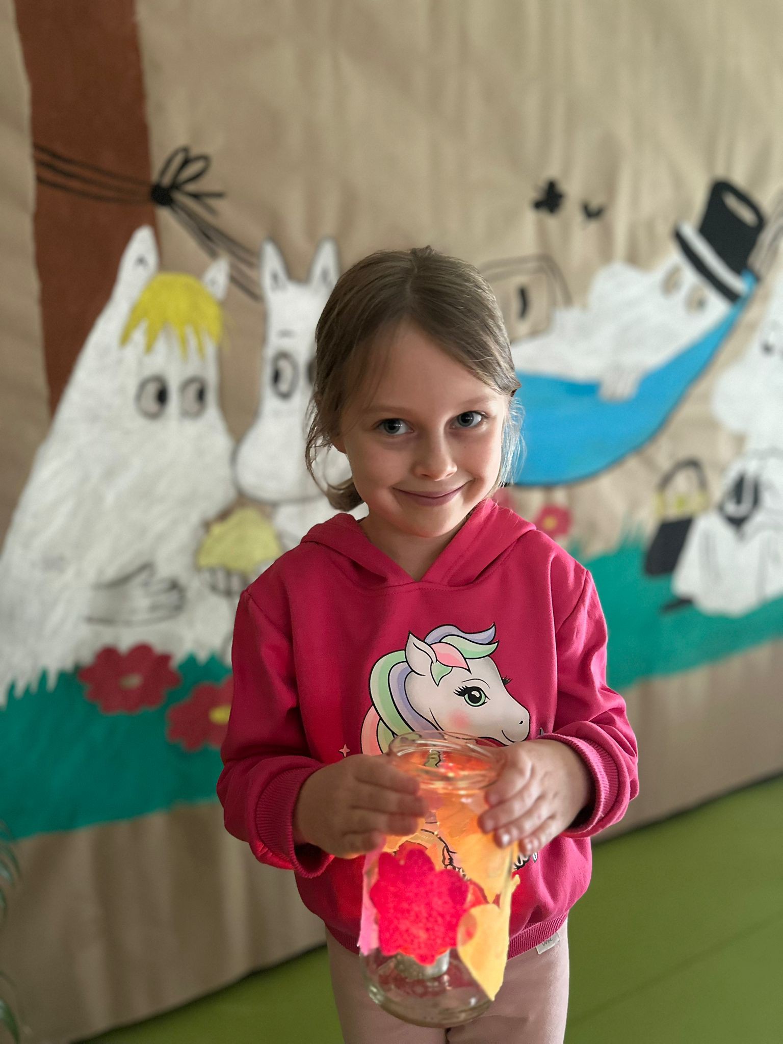 W minionym tygodniu w naszej grupie Groszków wydarzyło się coś wyjątkowego. Dzieci przeniosły się prosto do bajkowej Doliny Muminków, a sala przedszkolna zamieniła się w przestrzeń pełną światła, wyobraźni i kreatywnej zabawy.
