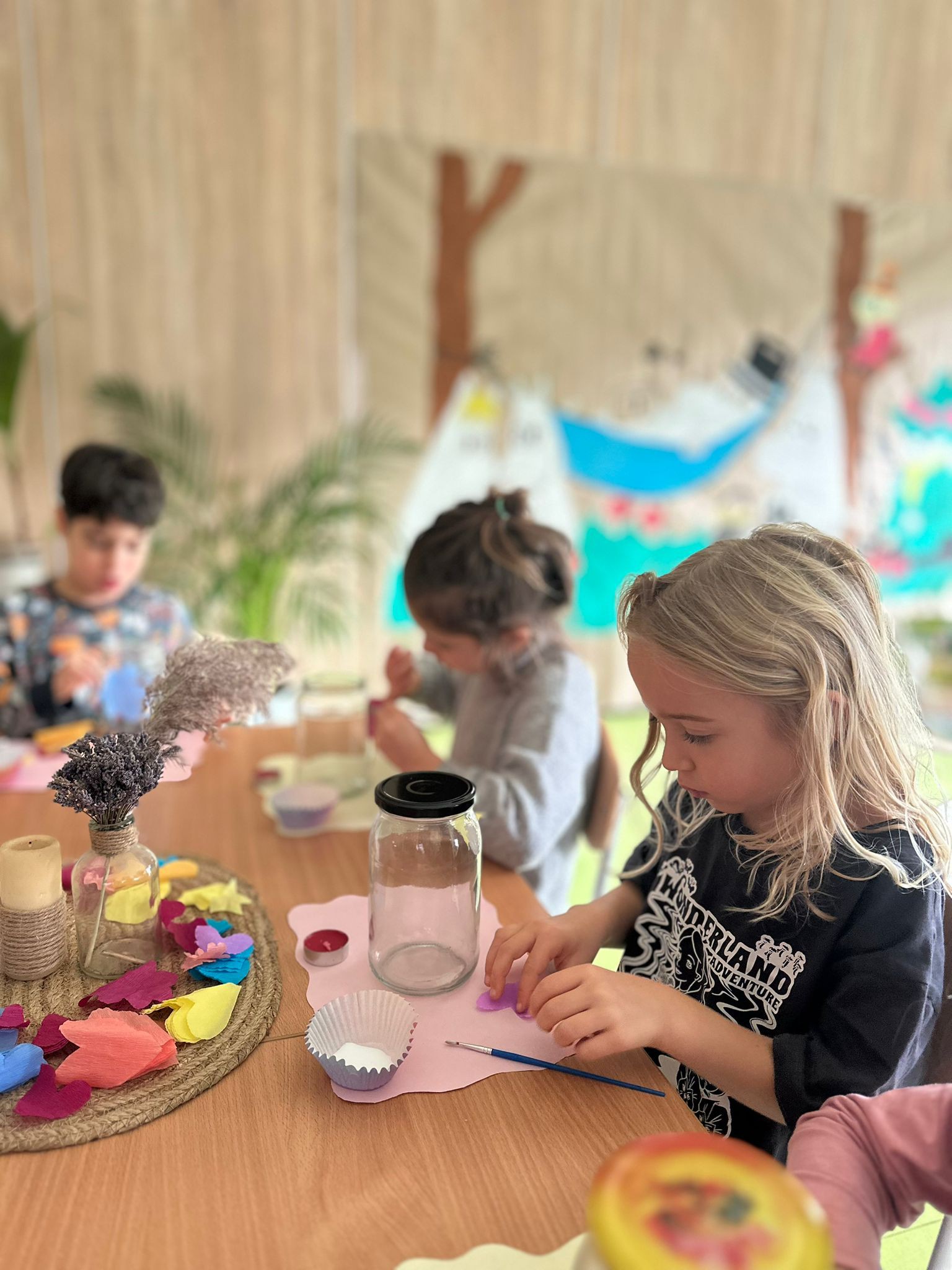 Na początek dzieci przygotowały własne postaci z Doliny Muminków – od sympatycznych Muminków, przez Włóczykija, aż po uroczą Migotkę. Powstały też kolorowe domki, które wyglądały jak żywcem wyjęte z opowieści Tove Jansson.