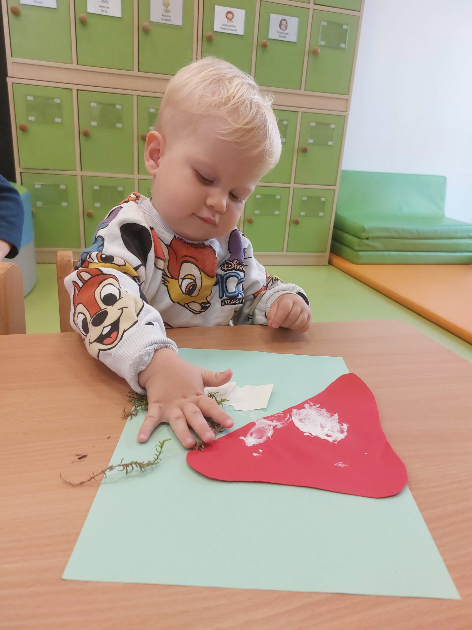 Z czym kojarzy się wszystkim jesień? Oczywiście z muchomorem. Nie mogło ich więc zabraknąć także w naszym magicznym lesie. Prace plastyczne pełne są barw jesieni, a dzieci dumnie prezentują swoje małe arcydzieła.