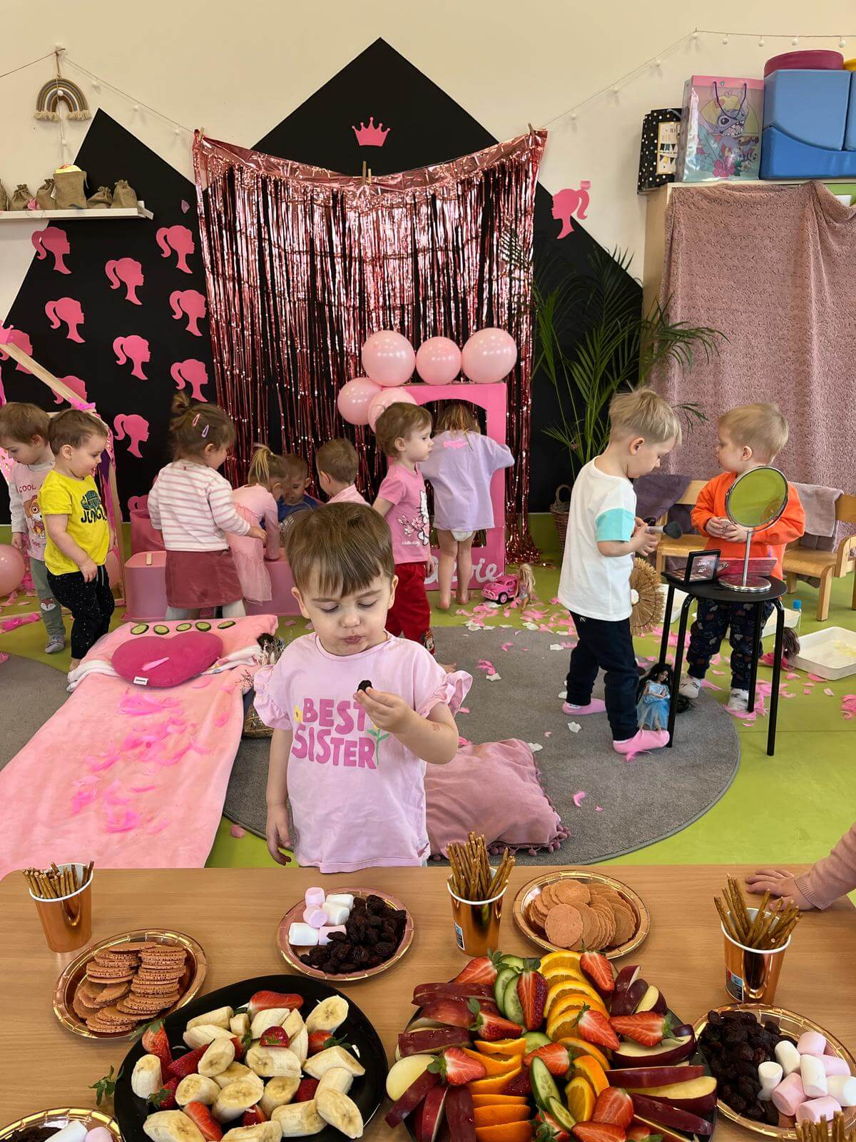 🌸 Dzień Kobiet w naszej grupie był naprawdę wyjątkowy! Tym razem przenieśliśmy się do świata Barbie – ciocie przygotowały dla maluchów mini SPA oraz salon piękności! 💅💄 Dzieci mogły zrelaksować się w cudownym, różowym otoczeniu, poczuć się jak prawdziwe gwiazdy! ✨