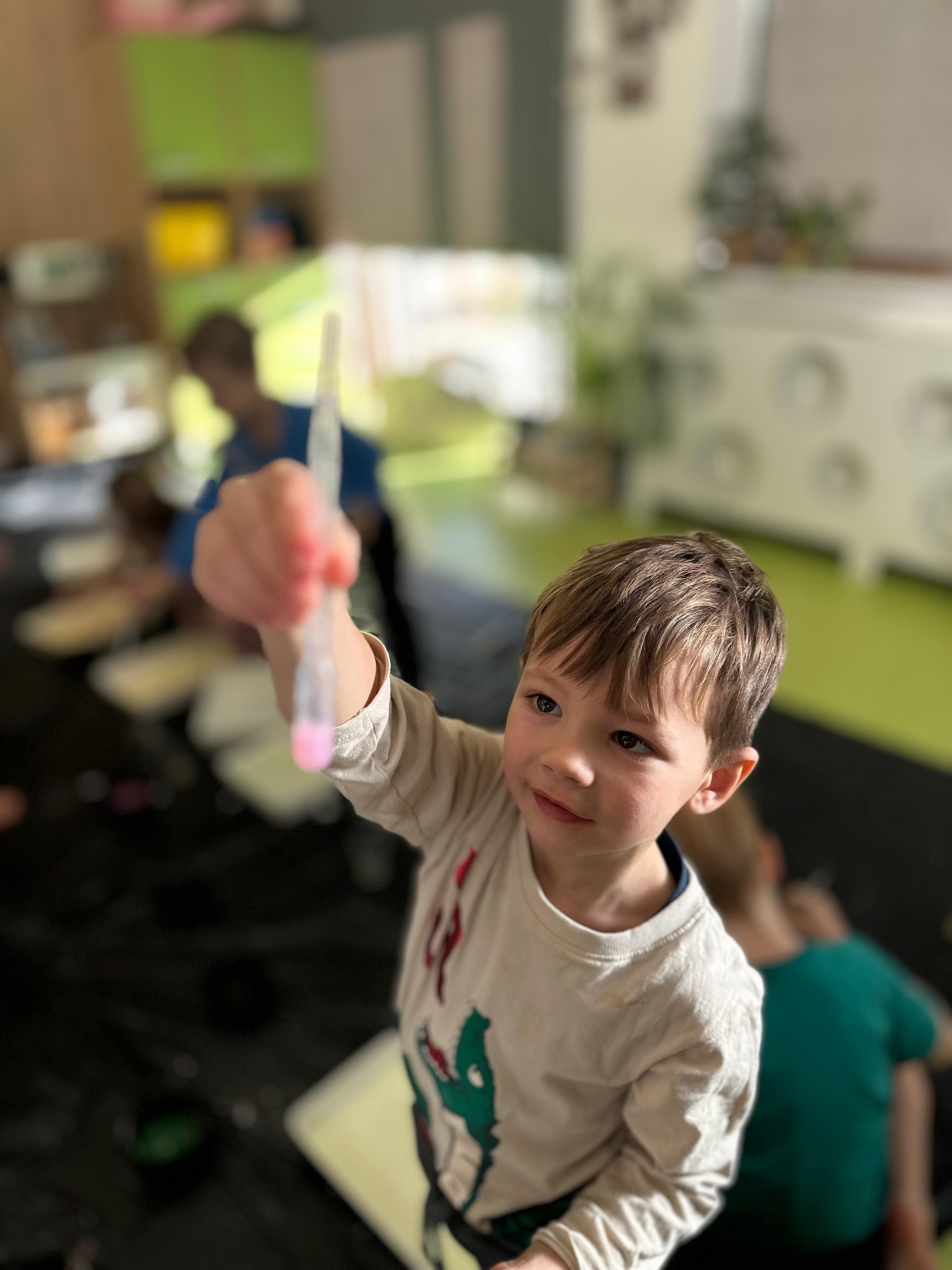 Dzieci poprzez zabawę poznają świat, uczą się zależności przyczynowo-skutkowych i mają przestrzeń do samodzielnego odkrywania. Takie doświadczenia to prawdziwa radość dla małych odkrywców! 💛