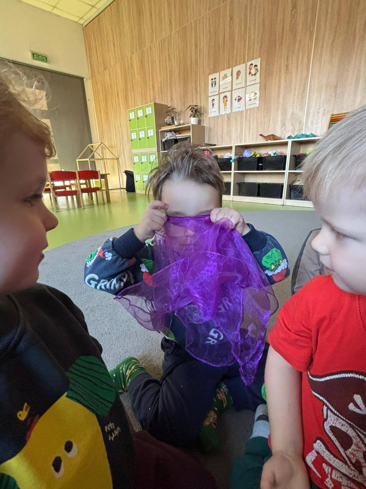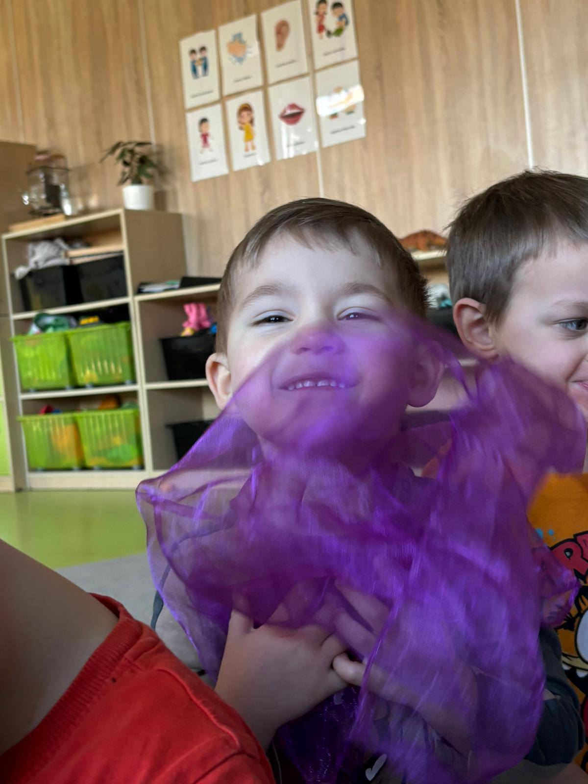 Podczas zajęć rozwijających zmysły i sensorykę dzieci zastanawiały się, z czym kojarzy im się Babcia i Dziadek – nie zabrakło skojarzeń z miłością, ciepłem i przytulaniem