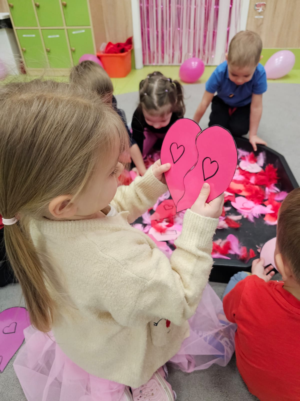 🕺💃 Zakończyliśmy ten cudowny tydzień imprezką – było tańcowanie, śmiechy, a nawet walentynkowe puzzle ukryte na sensorycznej tacy!